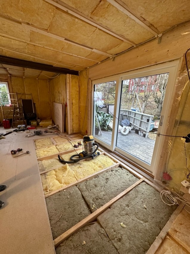 Oppussing av leilighet (gulv, isolere, overflater, listing)